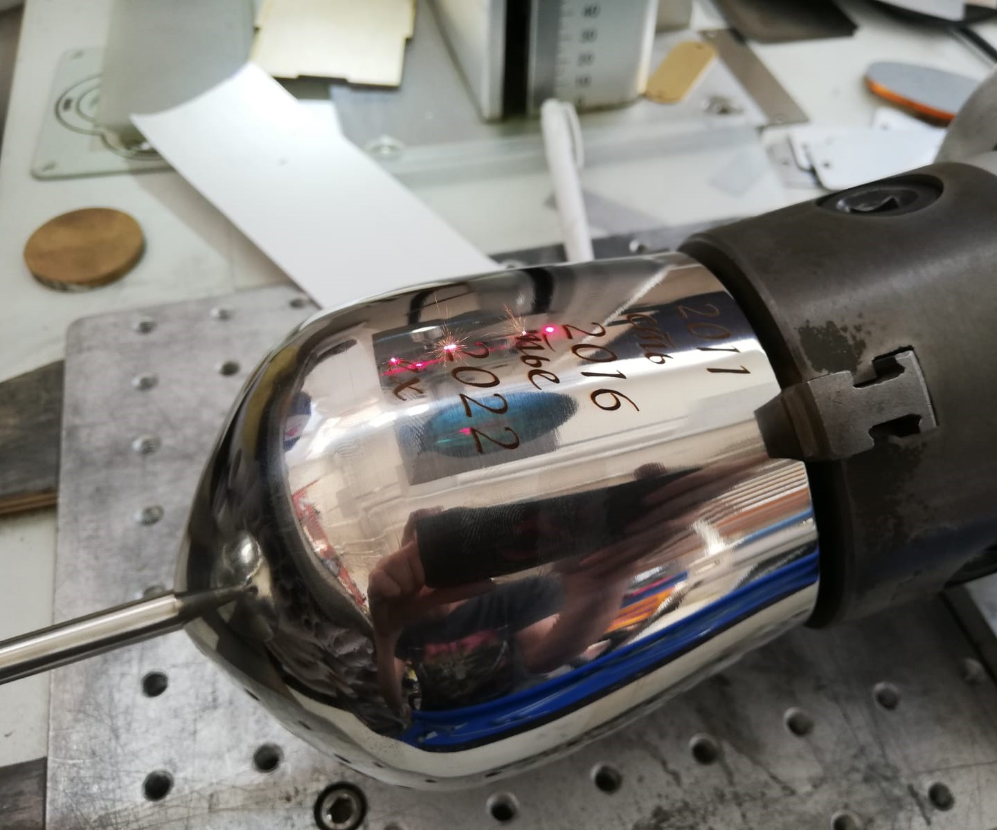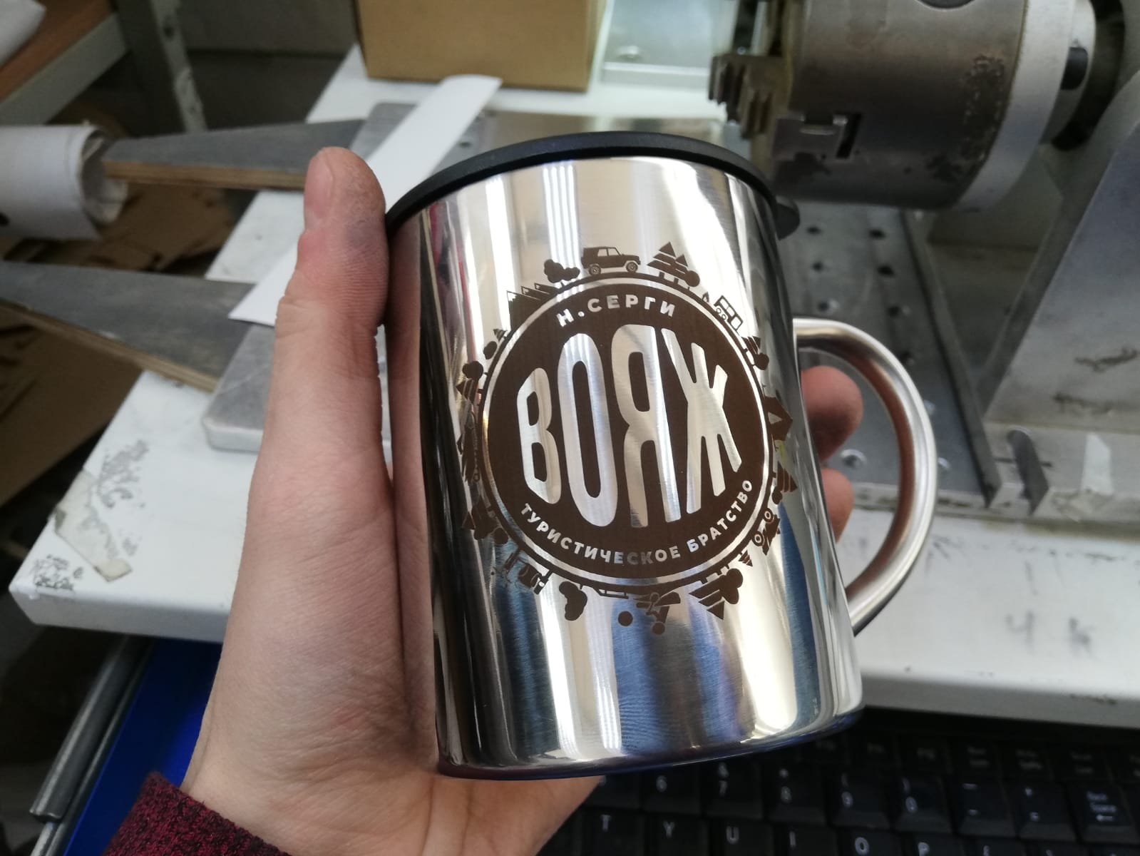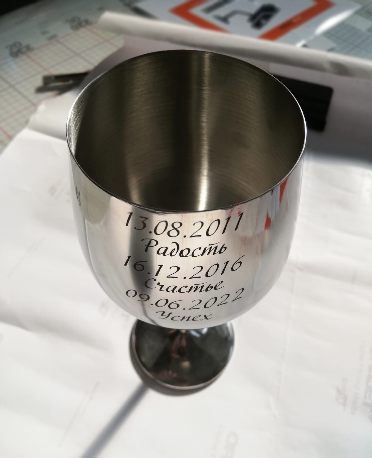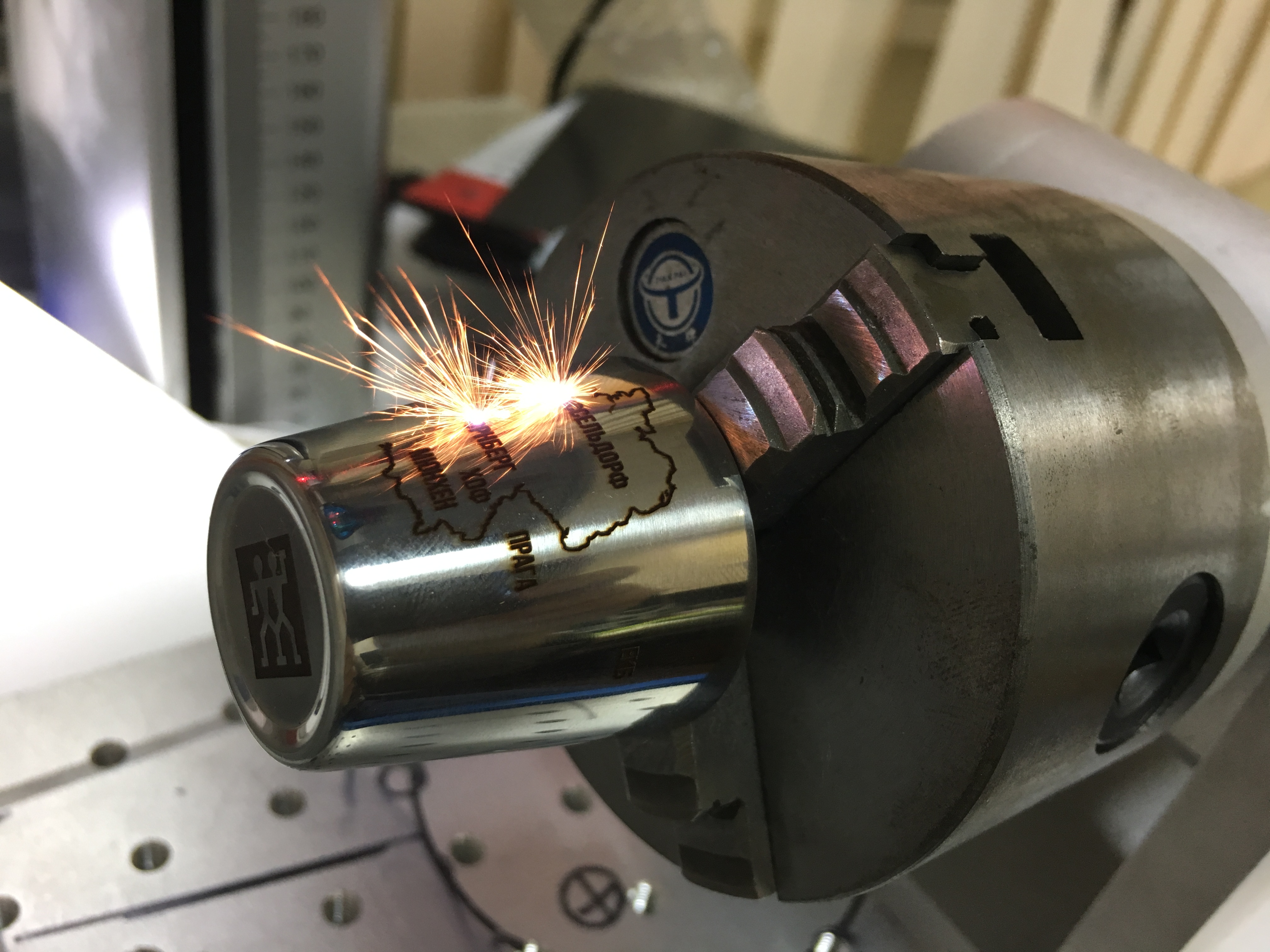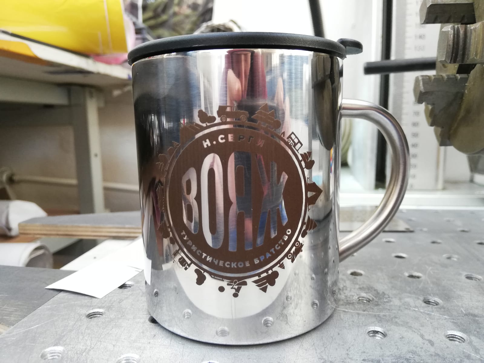 Гравировке по окружности. Стоимость зависит от тиража.