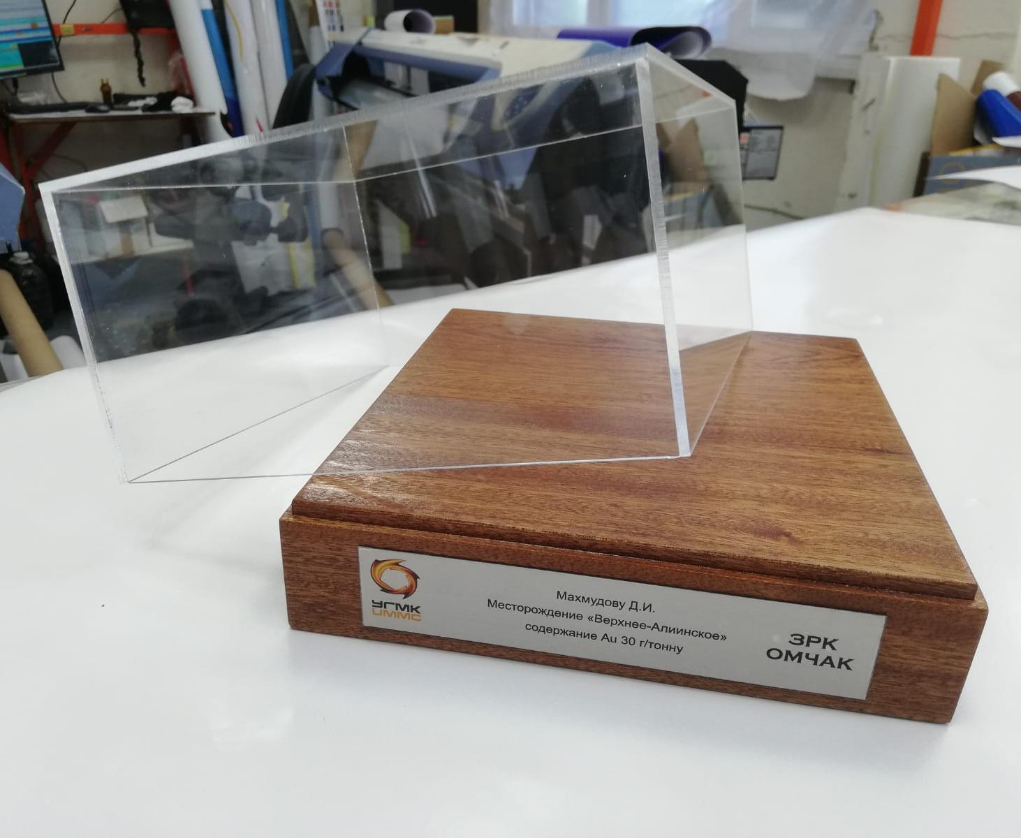 3.    Можем нанести гравировку на основание. Само основание может быть как из дерева, так и из оргстекла;