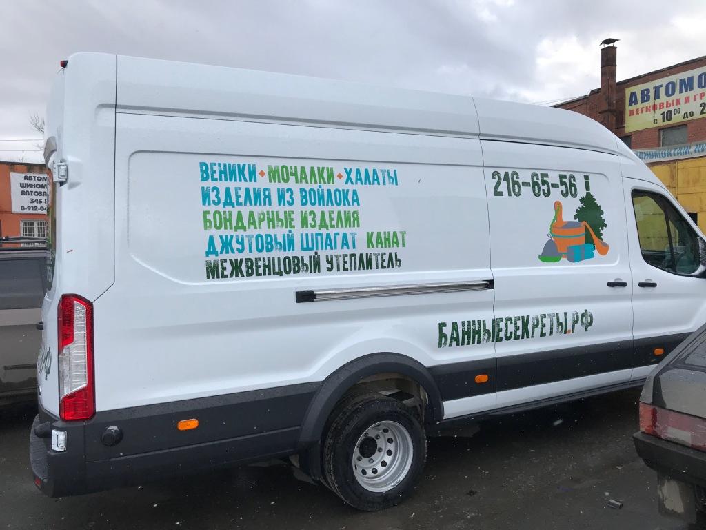 Брендирование грузового автотранспорта – одна из основных задач, решаемых усилиями специалистами «Print Ural». Нанесение рекламы на крупногабаритный «Форд Транзит» для компании «Банные секреты. РФ», было выполнено в ярком и креативном стиле.