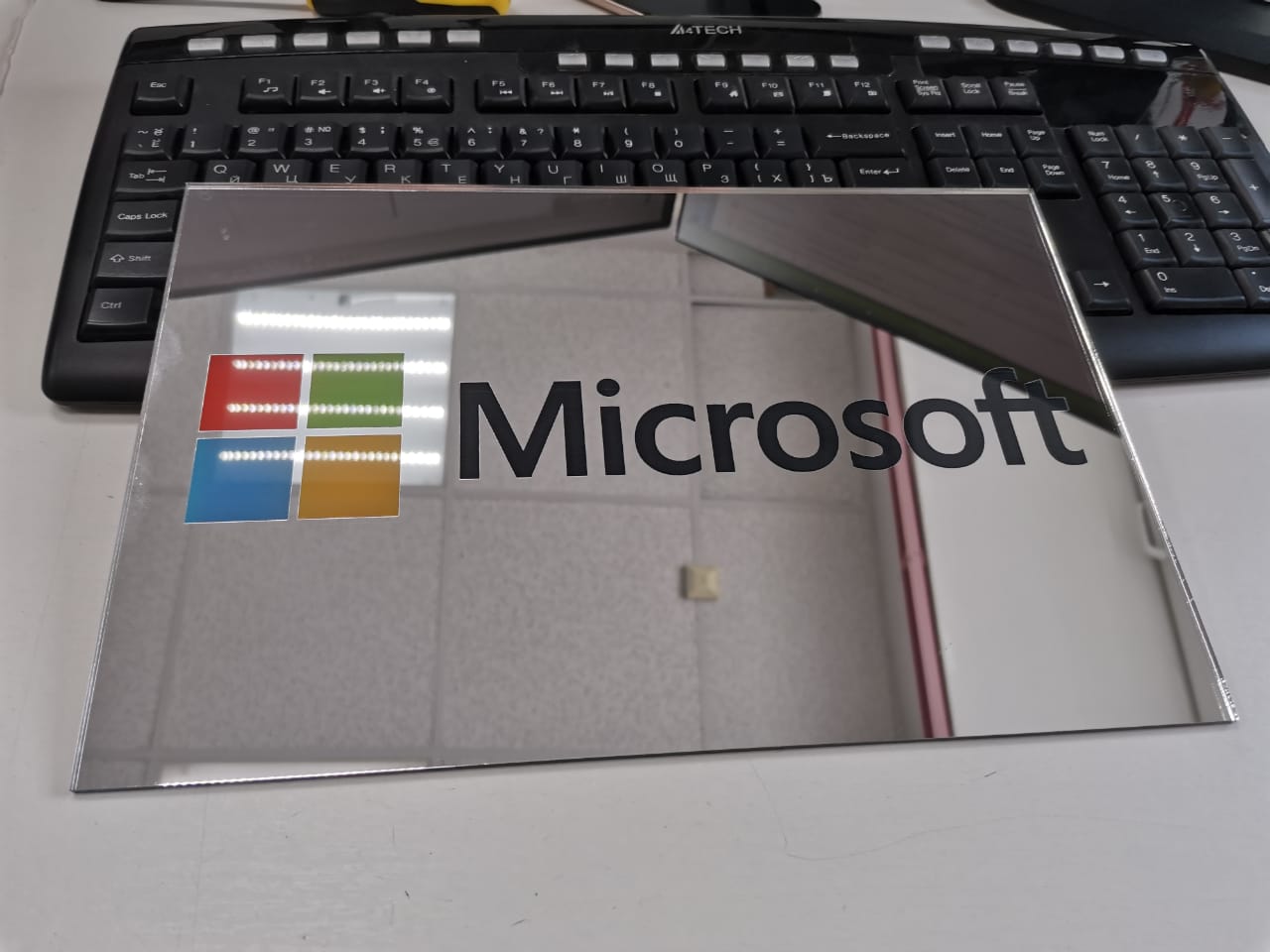 Зеркальная табличка с гравировкой и УФ печатью